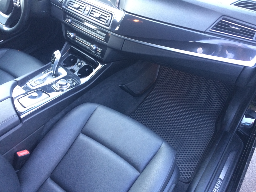 ЭВА — материал будущего. Полимерные коврики удерживают воду и грязь внутри ячеек так, что загрязнения не попадают на обувь и одежду даже на крутых виражах. Сами коврики EVA надежно закреплены на многоразовые липучки и подходят только для конкретного авто. У нас вы можете заказать автоковрики для BMW 5 (F10/F11) 2011- 2014 в Калуге с доставкой от производителя.