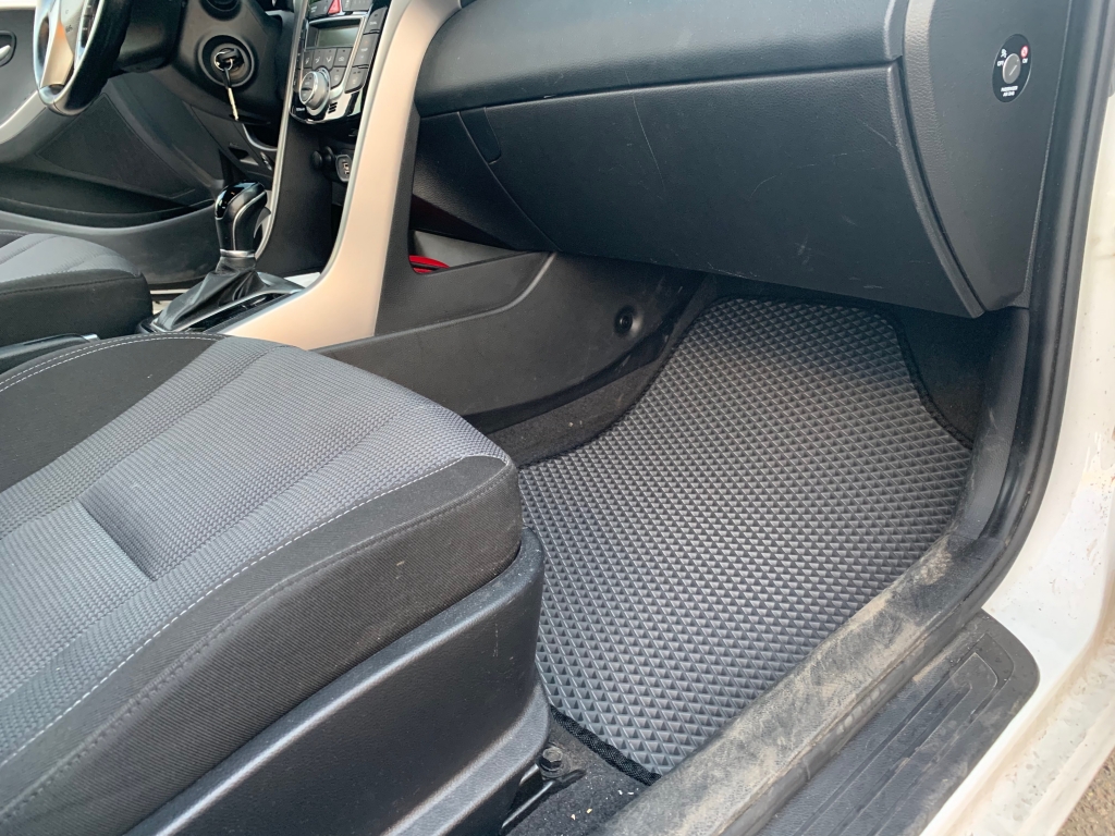 EVA коврики для автомобиля Hyundai i30 II 2011 - 2017 — это лучший выбор. Покрытие из этого ячеистого полимерного материала покупают сотни автолюбителей. Коврики из ЭВА долговечные, прочные, красивые. Сроки службы изделий — от 5 лет. Они не выделяют вредных веществ, ничем не пахнут. Коврики защищают пол автомобиля от грязи и влаги, а салон — от лишней пыли.